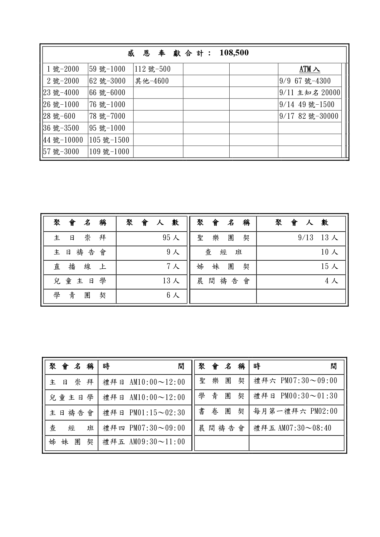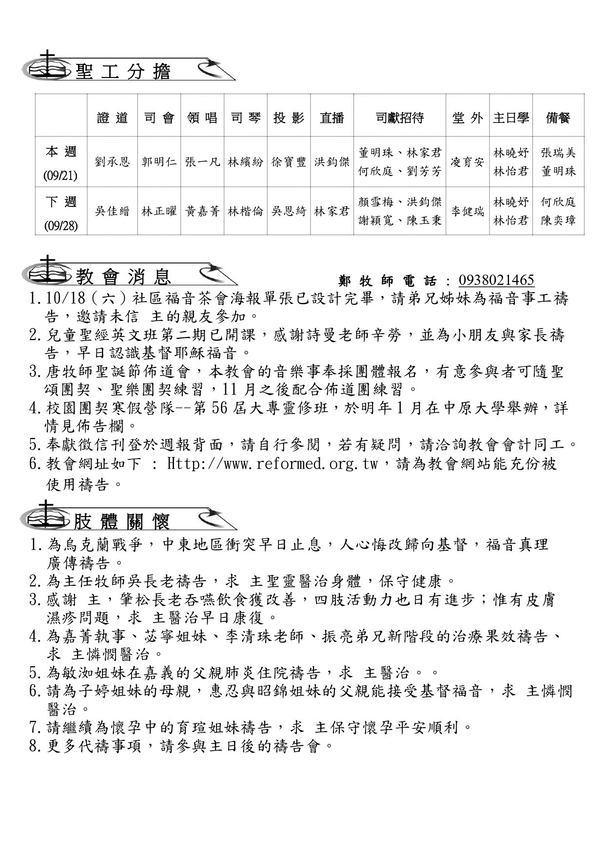 週日 13:15~1500 主日禱告會